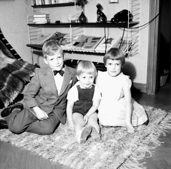 Rumsinteriör, tre barn.