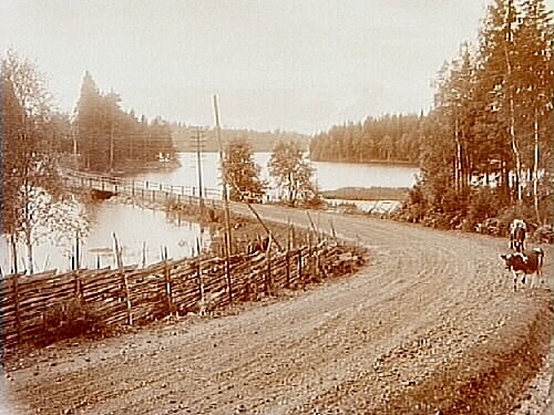 Rövarbron, gamla landsvägsbron över sjön Noren, 2-3 km. väster om Leken.