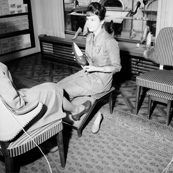 Titel: Oscaria skoaffär, interiör, skoprovning. Bilden tagen för annons.