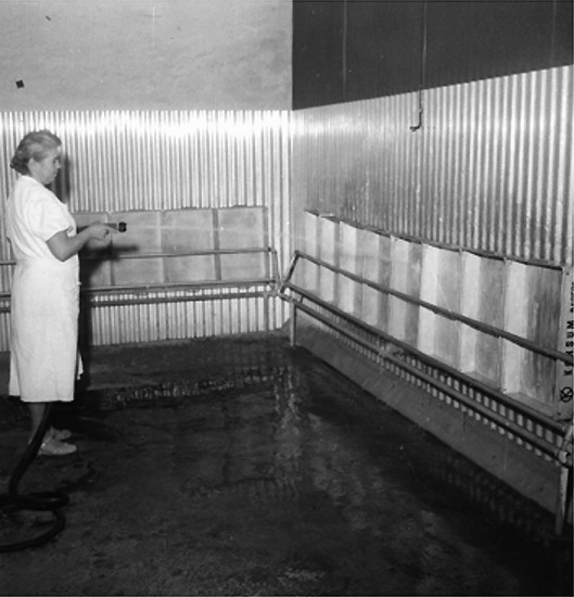 Konsum Bageriet, interiör, en kvinna, lådtvätt.