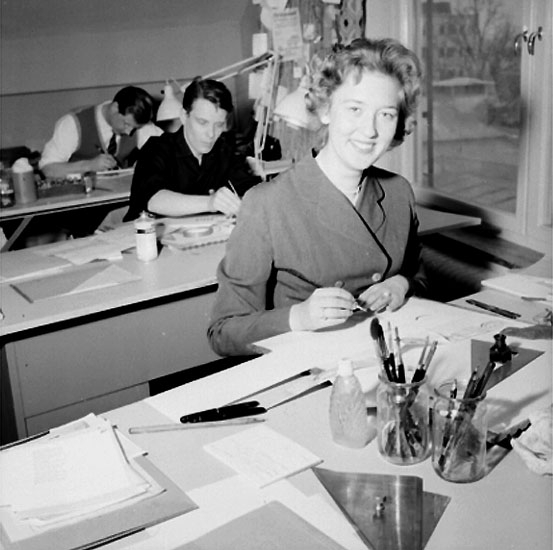 Ateljéinteriör, tre personer (en av landets modernaste ateljéer).