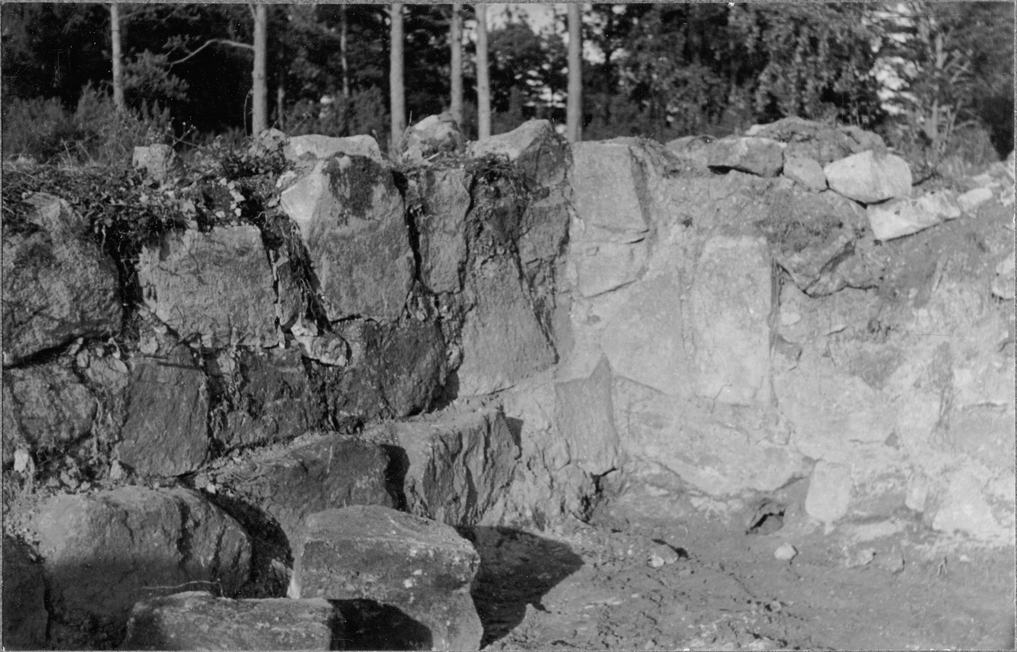 Skiljeväggen mellan långhus och kor, samt del av långhusets norra mur.