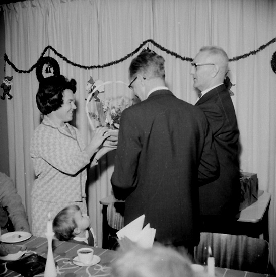 Titel: Avskedsfest för L.C. chefen Torsten Östergren, interiör, grupp.