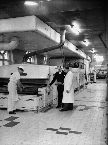 Konsum bageriet, interiör, fyra personer.