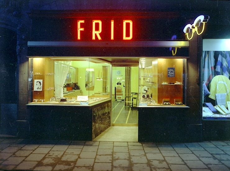 Optiker Frid, exteriör, skyltfönster.