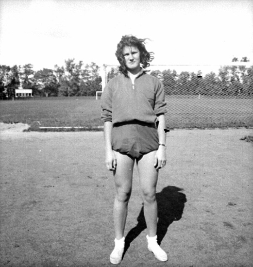 Idrottstävling för damer på Örnsro idrottsplats, en kvinna.