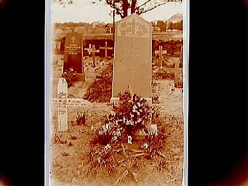Kyrkogård, gravsten med följande text: Vår fader, Lars Persson, från Via, född 12/6 1828, död 2/1 1915. Barnen, Sv. Ps. 452.