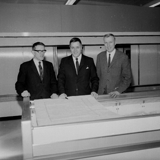 Titel: Konsum Domus stormarknad, interiör, tre män.