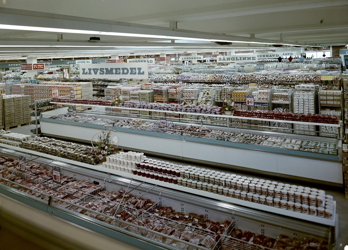 Konsum Domus Stormarknad, affärsinteriör, livsmedel.