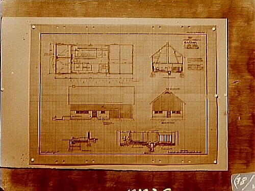 Ritning av ladugård i Östra Hagen, Linde socken.