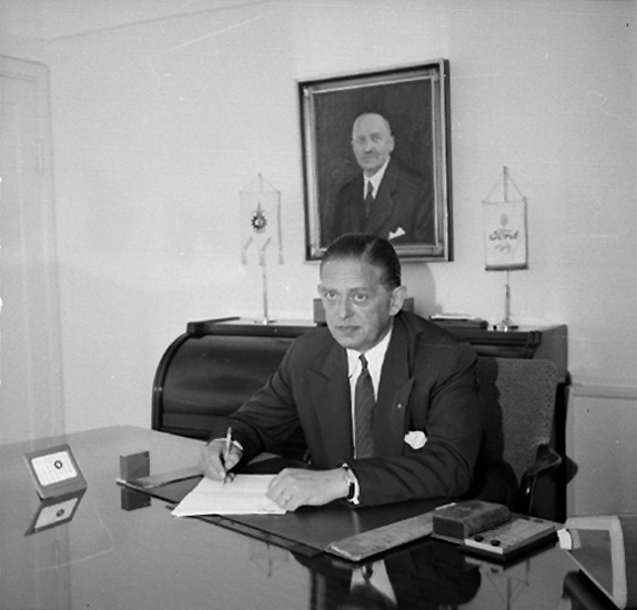 Titel: Kontorsinteriör, en man vid skrivbordet. Gustafsson & Görtz