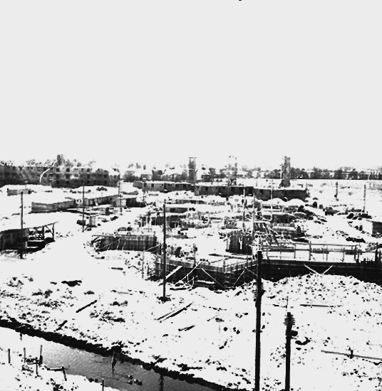 Titel: Byggnadsarbete, 3:e etappen. Bilden tagen i samband med en särskild dokumentation som fotografen gjorde åt Stiftelsen Hyresbostäder Örebro.