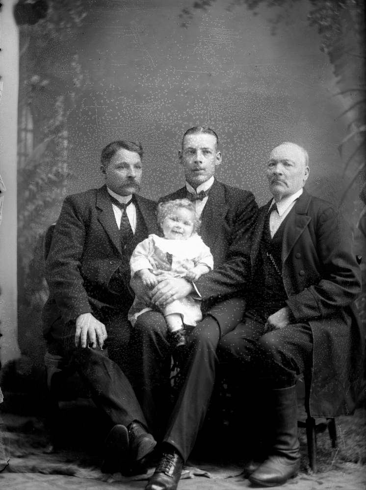 Fyra personer, fyra generationer. Gustaf Ferdinand Hallberg, född 1860-03-13 vid Hallaberg i Regna. Arthur Hallberg, född 1885-08-07 i Ohio, USA. Aron Hallberg, född 1829-09-29 i Högsjo bruk i Västra Vingåker. Helge Hallberg, född 1911-12-10 vid Svennevadsby i Svennevad.