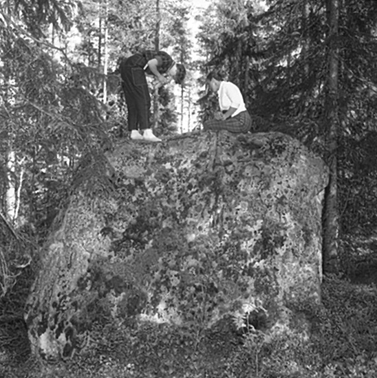 Två kvinnor på en sten.