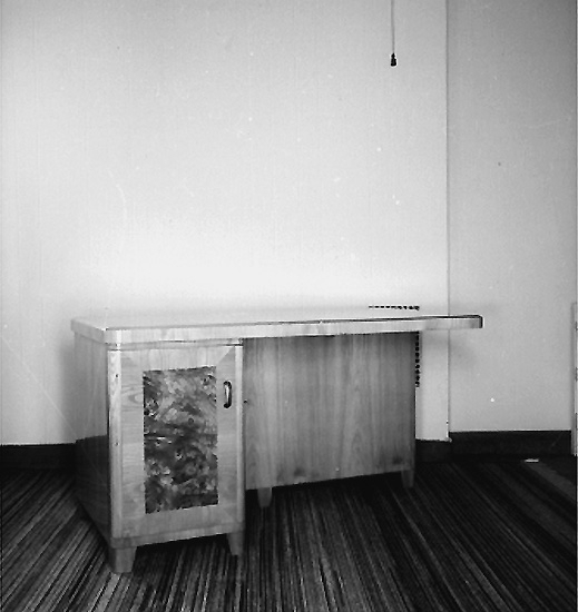 Konsum Möbler, affärsinteriör, ett skrivbord.