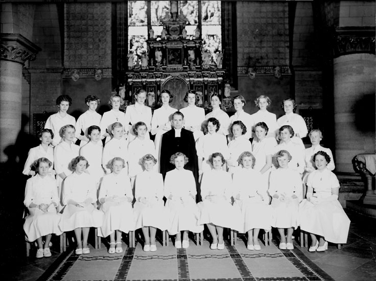 Konfirmander, 29 flickor och pastor Ragnar Ekström.