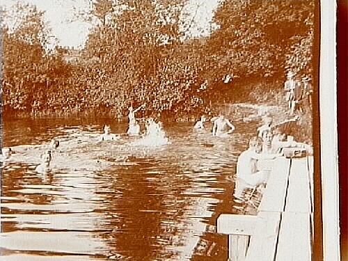Med tanke på topografin, bör bilden vara tagen vid dammen i Gropen med Kvistbro prästgård i bakgrunden.