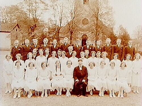 Rinkaby och Glanshammars konfirmander, 22 flickor, 18 pojkar och prästen.