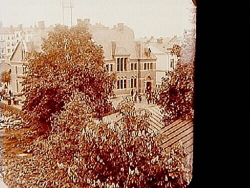Nikolaiskolan, skolans baksida, barn och lärare.