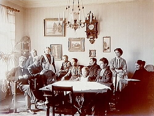 Rumsinteriör, 12 personer runt bordet.