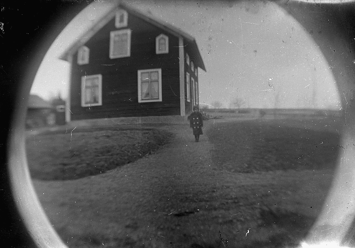 Bostadshus, en liten flicka framför huset.