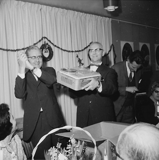 Titel: Avskedsfest för L.C. chefen Torsten Östergren, interiör, grupp.