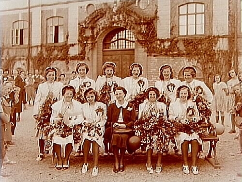Titel: Examen, realklass, 10 flickor med lärarinna fröken Lundwall. Olaus Petriskolan.