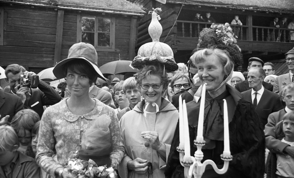 Tre kvinnor står på en gårdsplan i Wadköping. Kvinnan till vänster är klädd i blommig klänning och hatt, kvinnan i mitten är klädd i en lustig hatt och vit kappa och bär glasögon. Kvinnan till höger är klädd i mörka 1800-talskläder: en mörk klänning, mörk krage, mörk hatt och vita halvvantar. Hon håller i en vit ljusstake. Bakom de tre kvinnorna står en publik och tittar på.