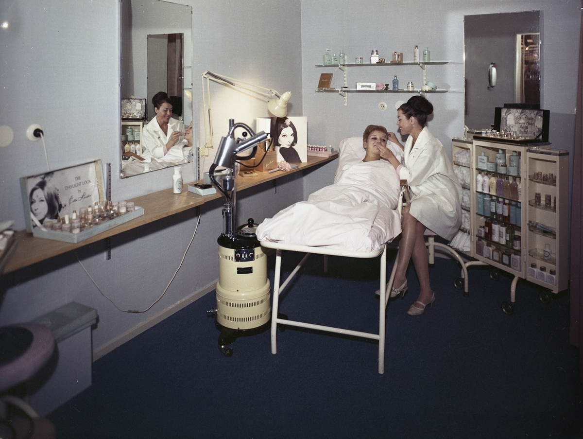 Krämarens skönhetssalong, interiör, två kvinnor.
