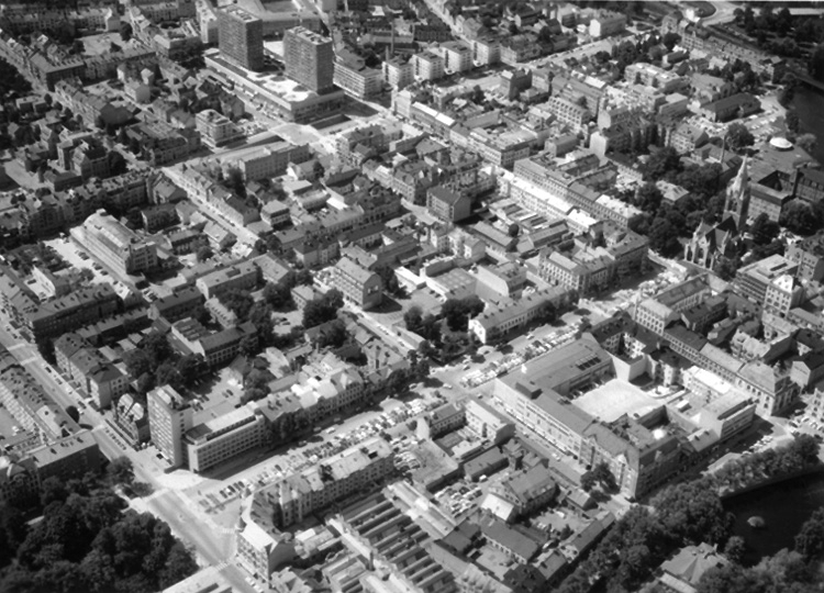 Flygfoto över Örebro, Nikolaikyrkan, m.m.