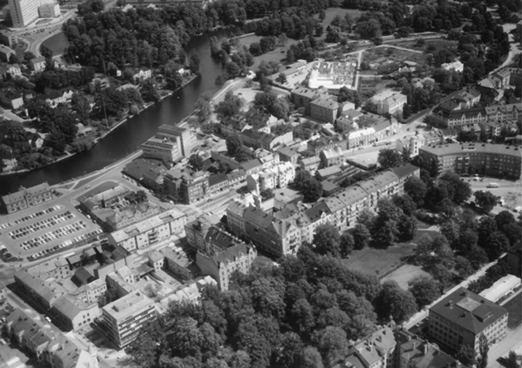 Flygfoto över Örebro, Svartån, Stadsparken, m.m.