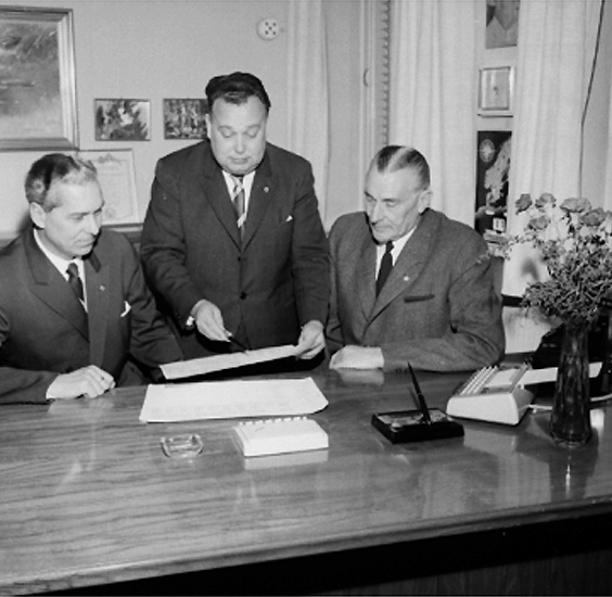 Normans bilfirma, kontorsinteriör, tre män.