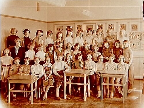 34 flickor och lärarinna fröken Kerstin Lindkvist.