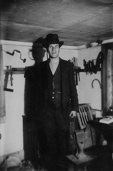 Karl Karlsson från Österäng, i verkstad i Hagalund.