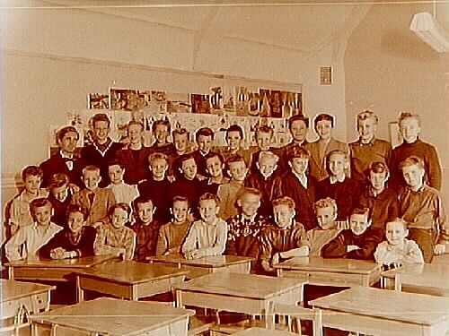 Vasaskolan, klassrumsinteriör, 35 pojkar med lärare Gunnar Wallin, klass 6H, sal 4.