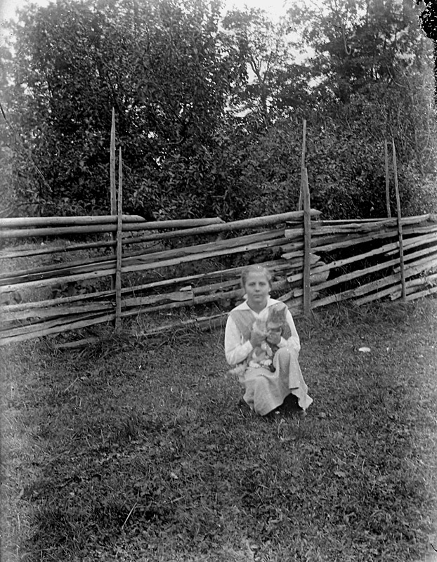 En flicka med en katt.