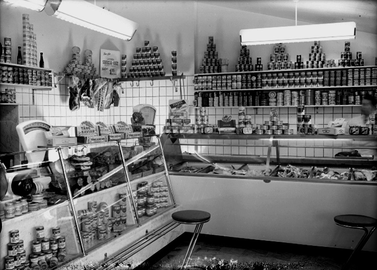 Konsum, affärsinteriör, fisk- och charkuteriavdelningen.