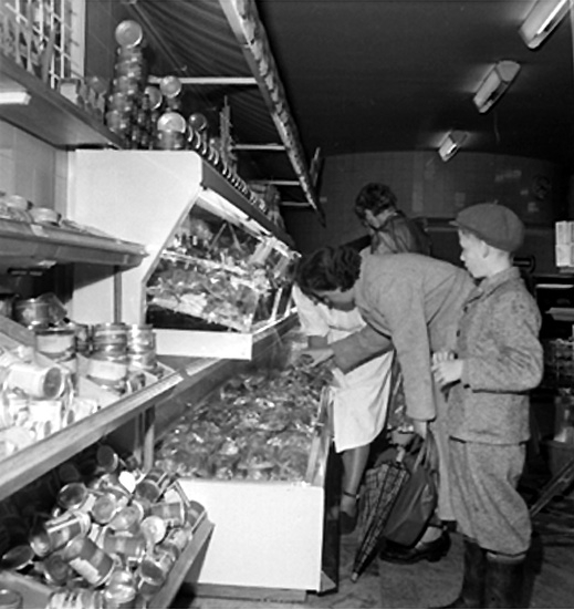Konsum snabbköp, affärsinteriör, kunder och personal.