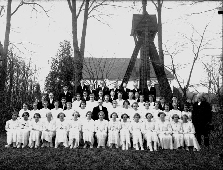 Konfirmander, 36 flickor, 17 pojkar och pastor Lindberg.
