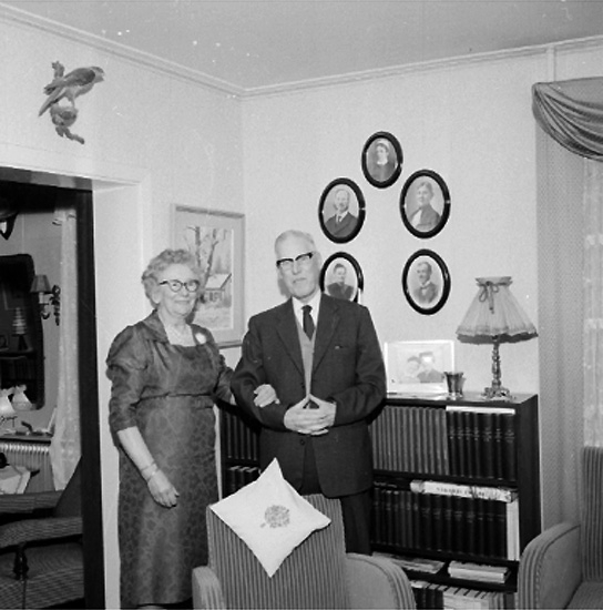 Rumsinteriör, ett par på 70-årsdagen.