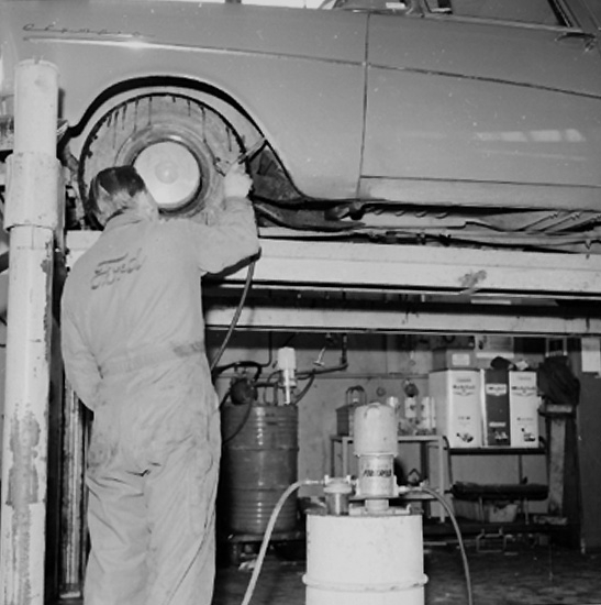 Allmotor AB, verkstadsinteriör, biltvätt, en man.