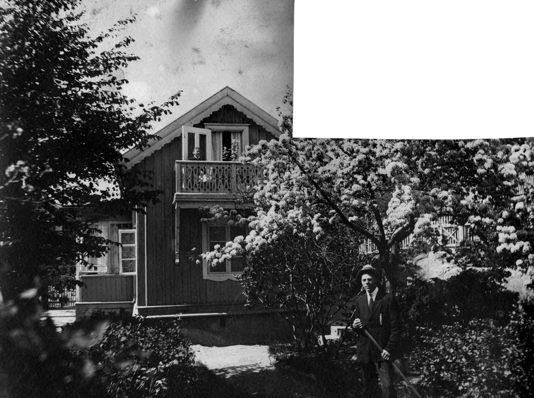 Titel: Bostadshus, en man.