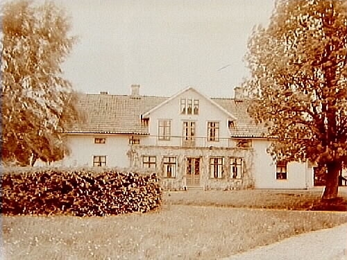 En och en halvvånings bostadshus med frontespis, veranda som är glasad och balkong.