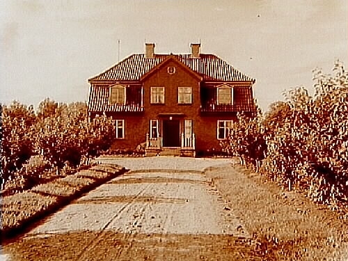 Tvåvånings bostadshus med frontespis, takkupor och brutet tak och trädgård vid Svartån.