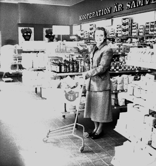 Konsum snabbköp, affärsinteriör, en kvinna.