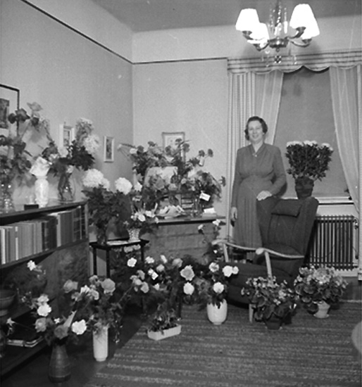 Titel: Rumsinteriör, en kvinna. Fru Göransson på 50-årsdagen.