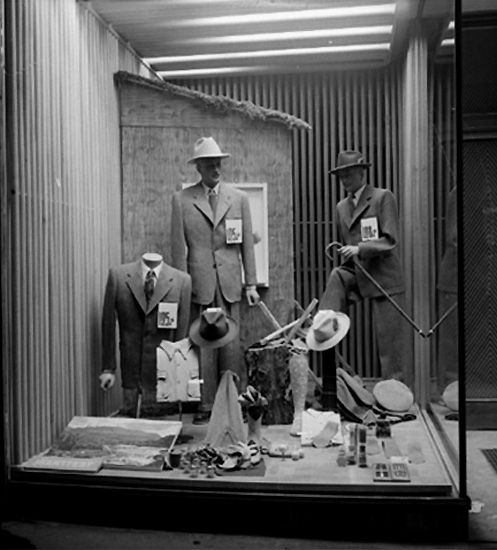 Titel: Jörnstedt herrekipering, skyltfönster med herrkläder.