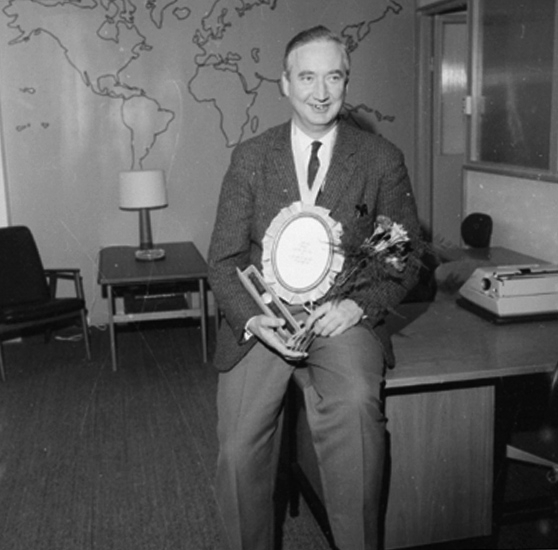 Wigrell & Co, kontorsinteriör, en man. Prisutdelning.