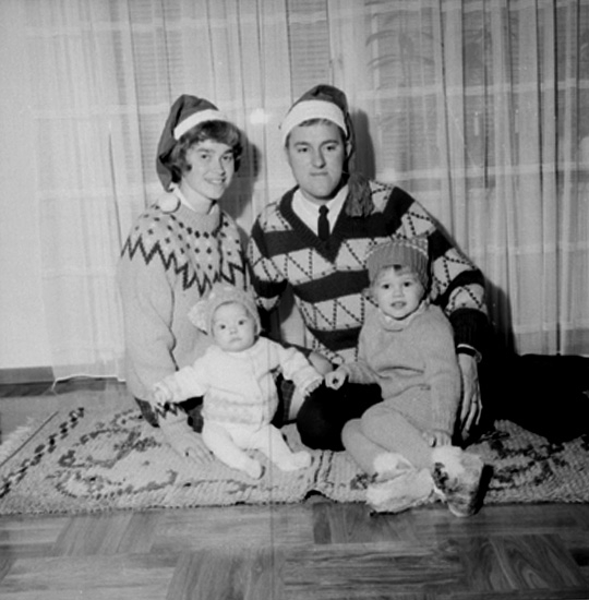 Rumsinteriör, familjegrupp fyra personer.
