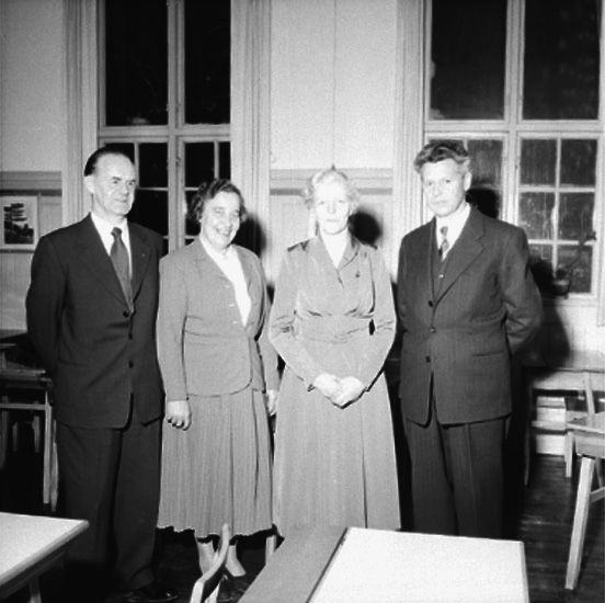 Rynninge skolas 40-årsjubileum, gruppbild, fyra personer.